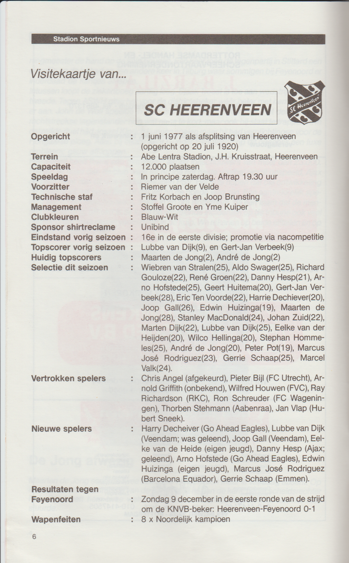 De kwaal van Sabau bleek in de tweede helft besmettelijk. Feyenoord propte elke aanval door het overvolle centrum. De vleugels werden verwaarloosd, echte pressie bleef achterwege. Het thuisteam versnipperde tot éénlingen. „Het was na rust erg onsamenhangend”, gaf Heus toe. „Wij hebben het onszelf moeilijk gemaakt. Wij lieten Heerenveen in de wedstrijd komen”, kapittelde doelman Ed de Goey. De bezoeker, nog te zwak voor de middenmoot in de eredivisie, knokte zich zowaar naast Feyenoord. Zestien minuten na rust beoordeelde Heus ondeskundig een hoge bal, waarna Lubbe van Dijk de bal maar voor het inschieten had: 1-1. „Door een windvlaag begon de bal te fladderen. De bal viel daardoor precies voor de voeten van Van Dijk. Het was een grote fout van mij. Daardoor gaf ik de zege weg”, biechtte Heus op.