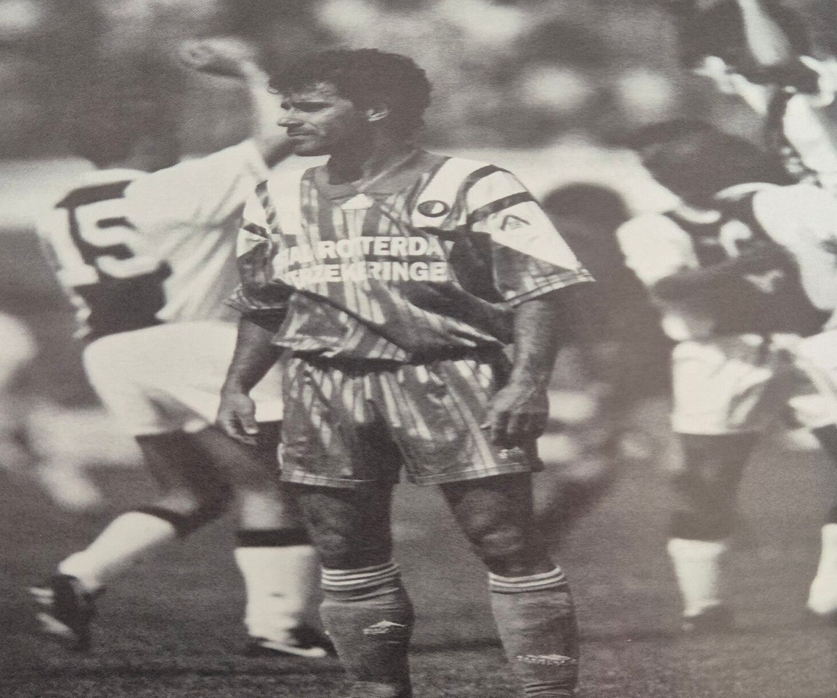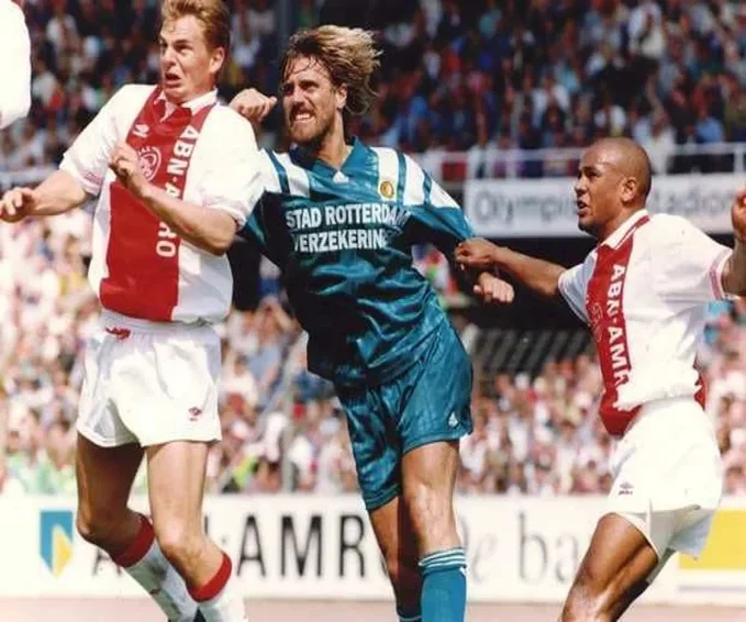 Zonder de aan de knie gekwetste Jozsef Kiprich sneed de bezoeker het duel van de waarheid al met een zekere schroom aan. Samen met Geert Meijer opteerde Van Hanegem voor een wat meer behoudende tactiek, met Dean Gorré als een soort buffer tussen Gaston Taument en Regi Blinker. Dat systeem bracht niet Ajax maar Feyenoord zelf In verwarring. „Je kan uitdokteren wat je wil, als de uitvoering niet deugt, heeft bet allemaal geen zin”, bromde de hoofdtrainer, net als in de afgelopen keren hoorbaar uit zijn humeur. Niet het op zich (kennelijk) te moeilijke concept maar de ongewoon makke mentaliteit verzwakte Feyenoord tot een weerloze prooi voor Ajax. In exact een half uur flitste de thuisclub naar 3-0 (van Ronald de Boer, Marciano Vink en Wim Jonk). „De goals van Ajax kwamen veel te gemakkelijk tot stand. Bij elk doelpunt stonden er bij ons wel een paar suffig toe te kijken”, foeterde Van Hanegem, met name doelend op de tweede en derde treffer van de Amsterdammers. Was het toch angst, respect, ontzag of eenvoudig de erkenning van het klassenverschil, waardoor Feyenoord bijkans verlamd de eerste helft onderging? „Tegen Feyenoord zijn we op ons scherpst. En dan kan Ajax elke ploeg verslaan”, meende winnende coach Louis van Gaal. Maar dat verklaarde slechts ten dele het mystieke complex van de Rotterdammers, die pas na 4-0 van weer Jonk opveerden en opleefden. Met Mike Obiku in de spits en later de IJslander Arnar Gunnlaugsson als gangmaker op de vleugel sloop Feyenoord dank zij Blinker en de ingevallen Nigeriaan zowaar naar 4-2. Tegen Obiku beging Sonny Silooy nog een overtreding, die om een strafschop gilde. En met 4-3 had de slotfase wellicht nog wat vergoed van het gemis aan spanning en spektakel.