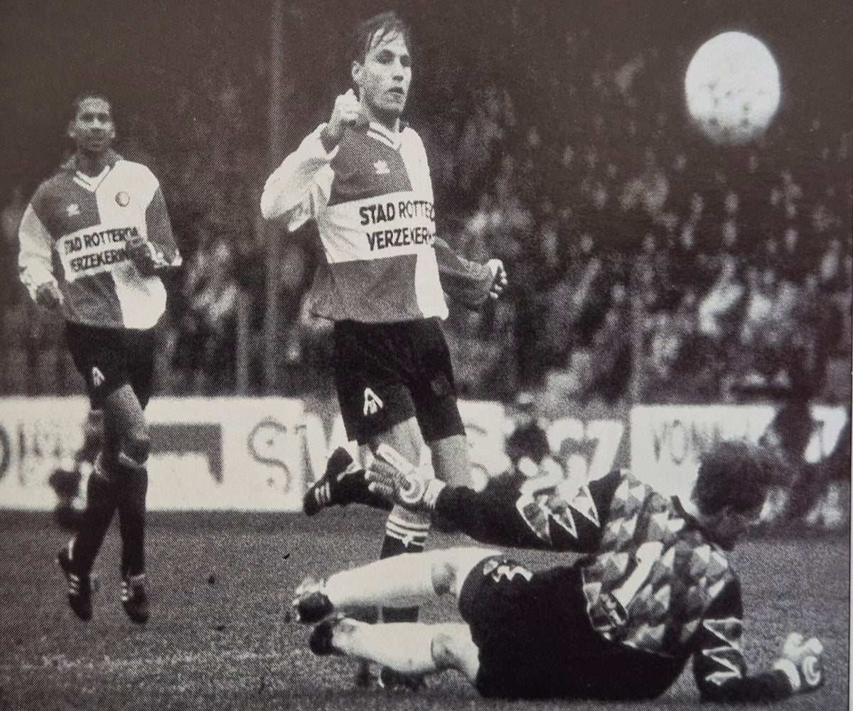 Dennis Heine heeft daar duidelijk moeite mee. De nog steeds in Vlissingen woonachtige Deen begon veelbelovend, maar verslonsde allengs het teambelang. Nadat hij tegen MVV was gepasseerd, meldde Heine zich ziek. Zoals ook aanvoerder Van Eck gisteren ziek naar huis ging. De oudere broer van Luzern-speler René van Eck, en woonachtig nabij de Kuip, probeerde vergeefs een familievete tegen Feyenoord te beslechten. „Ik wil revanche nemen voor wat mijn broer is aangedaan in de strijd om de Europa Cup", zo liet de Rotterdammer zich citeren in de plaatselijke krant. „Vooral De Wolf en Bosz hebben zich toen asociaal gedragen. Zeven spelers van Luzern durfden niet eens het veld te betreden. Zoals ik mij nu voel, bestaat er zelfs het risico dat ik tegen een kaart aanloop.” Dat gebeurde ook, hoewel Van Eck zich redelijk onder controle had. De bewuste overtreding op de uitblinkende Regi Blinker betekende wel zijn derde gele kaart, zodat Van Eck er komend weekeinde tegen Willem II niet bij zal zijn. Met een reprimande van zijn coach ('hij kan zich beter op de wedstrijd concentreren’) en onder hoongelach ging de verdediger naar huis. De Wolf: „Dit was heel laag. Het typeert Van Eek dat hij na het eindsignaal als een speer naar de kleedkamer holde." Feyenoord vierde daarentegen een klein feestje in de sfeerloze Vliert. Slechts 6.200 mensen hadden een kaartje in de voorverkoop (de kassa’s waren op de wedstrijddag gesloten) gekocht. Zij zagen FC Den Bosch strijdend ten onder gaan. De voetballende worstelaar Mike Obiku effende al na 25 minuten de weg naar de " royale triomf. Witschge, na een voortreffelijke pass van de andermaal gewisselde Metgod, maakte voor rust 0-2. Bij een vrije trap van Witschge liet de lange Hans Vonk zich in de tweede helft verrassen door de bal, die via een polletje van richting veranderde. Derksen zorgde daarna nog voor 1-3, na een fout van Blinker. Die treffer bleek een stuiptrekking, want Blinker en Taument maakten ondubbelzinnig duidelijk dat FC Den Bosch met een veredeld tweede team in actie kwam, 1-5.