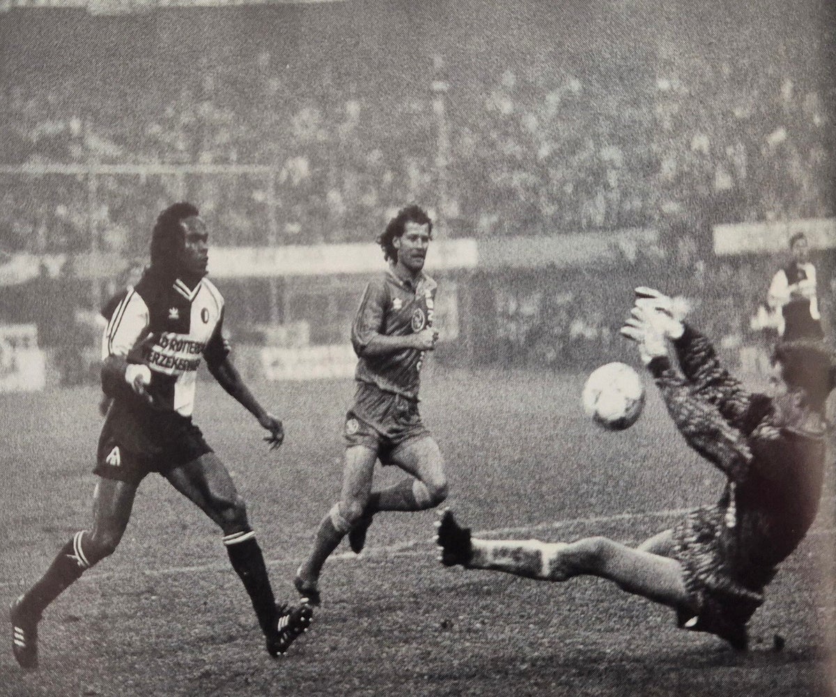 Ajax heeft Feyenoord met 0-3 op z’n nummer gezet. De Amsterdammers regisseerden de klassieker, waarin voor de Rotterdammers alleen gedurende een stief kwartiertje na rust een hoofdrol was weggelegd. Het was uiteindelijk aan doelman Ed de Goey te danken dat Ajax een 'uur nodig had om het kwaliteitsverschil met de openingstreffer uit te drukken. De lange Gouwenaar frustreerde de traditionele rivaal met een aantal fraaie reflexen. Geen moment werd duidelijk dat de nummer 1 van Feyenoord door een verrekte enkelband tot gisteren niet had getraind.
